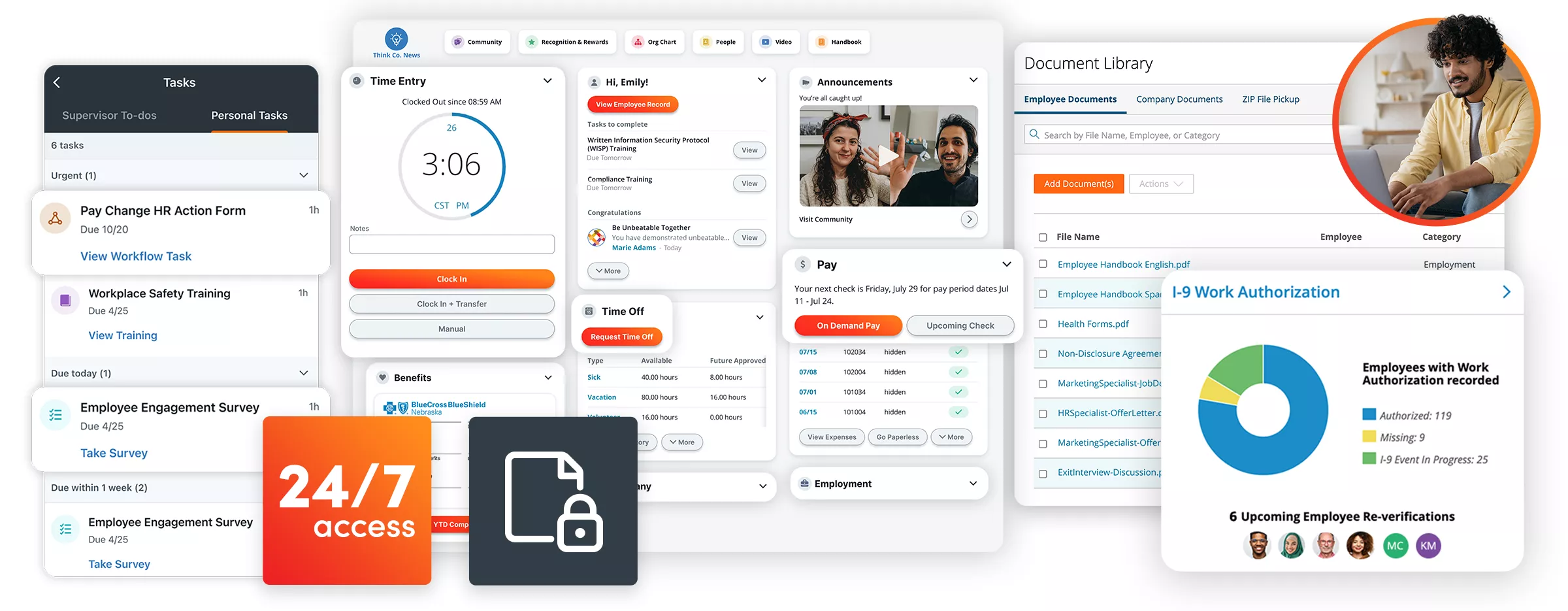 With Employee Self-Service, employees have secure, 24/7 access to payroll and HR data. They can access paystubs and tax forms, request time off, update personal information, and even collaborate with their teammates.